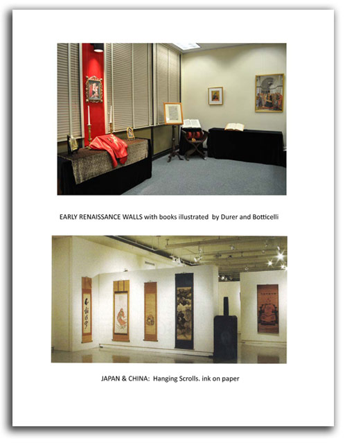 Leonardo's Book Illustrations, Phillips Collection Library, Washington, D.C.; Early Flemish Paintings: Renaissance & Baroque, Fine Arts Museums of San Francisco; Giorgione & the Experts, Oglethorpe University Museum, Atlanta; Leonardo’s Light in “The Last Supper” and “Christ among the Doctors,” Fine Arts Museum of the South, Mobile; Looking at Leonardo: An Exhibition of Books, Facsimile Manuscripts, Models, & Websites, CSUEB; The Spirit of the Renaissance: A Re-Creation of the Urbino Studiolo, CSUEB; Flaming Pages: The Illuminated Books of William Blake, CSUEB; Three Centuries of French Art (Norton Simon collections), Fine Arts Museums of San Francisco; Vincent van Gogh, Norton Simon Museum, Pasadena; Hector Guimard, MoMA, New York; Impossible Realities: Marcel Duchamp & the Surrealist Tradition, Norton Simon Museum, Pasadena; The Spontaneous Gesture: Prints & Books of the Abstract Expressionist Era, National Gallery of Australia, Canberra; Global Vision: A Survey of World Art, CSUEB.